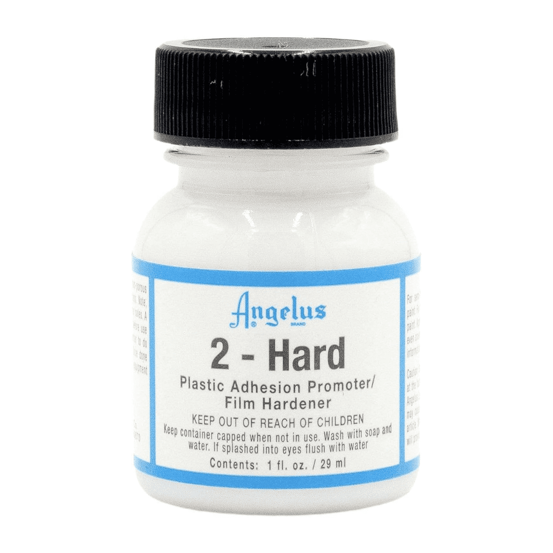 El medium Angelus 2-Hrad es ideal para trabajar con una superficie dura como el plástico (suelas de calzados, vasos o cualquier otro artÃculo) y sobre una superficie no porosa como vidrio.