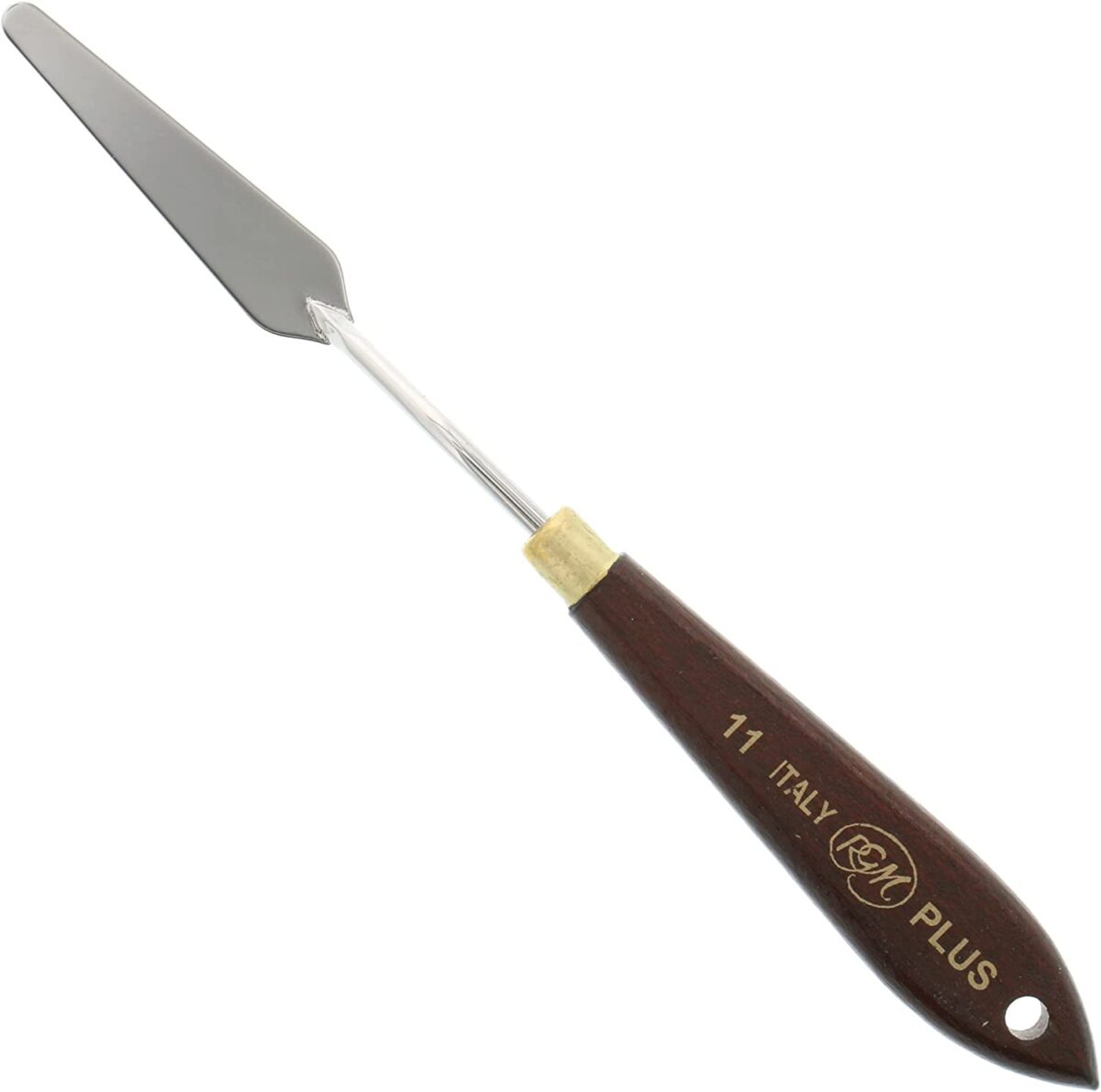 Las espátulas RGM Italian Plus están fabricadas con acero de alta calidad que está especialmente tratado para proteger la hoja y mejorar la capacidad de esparcir el color. Los mangos ergonómicos cuentan con virolas de latón macizo y hermosos mangos de madera de bubinga. Cada hoja está templada y rectificada a mano para asegurar una flexibilidad y calidad constantes.