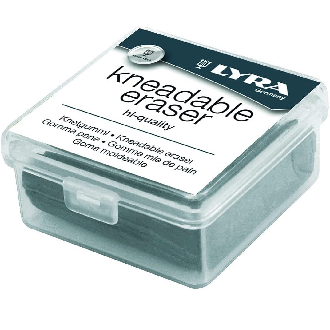 Borrador amasable en cualquier forma para eliminar lápiz, tiza, carboncillo y pastel. Una caja de almacenamiento de plástico lo mantiene protegido entre usos. El borrador mide 1-1/4″ × 1-1/4″ × 7/16″.