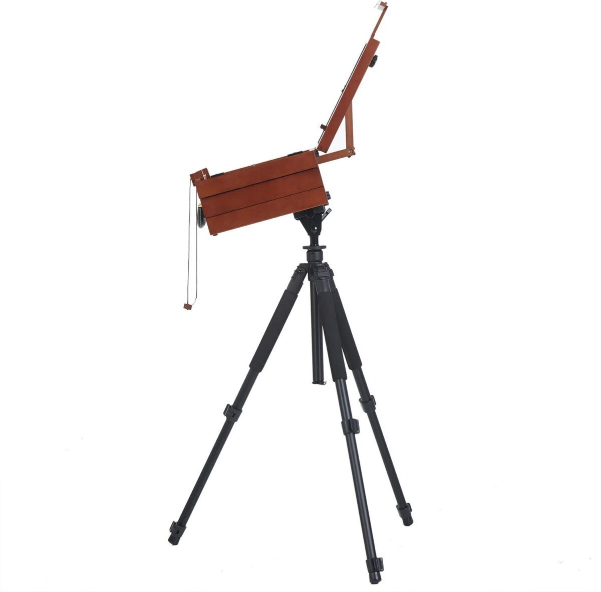 Este caballete todo en uno, es una caja pochade ajustable diseñada para pintar en exterior, viene con un trípode de aluminio resistente, se puede utilizar como Plein air como un caballete francés para la pintura al aire libre, con los topes de goma en la parte inferior, también se puede utilizar como un pequeño caballete de sobremesa para uso en interiores estudio también. Su versatilidad le permite pintar donde quiera. Soporta lienzos hasta 17″