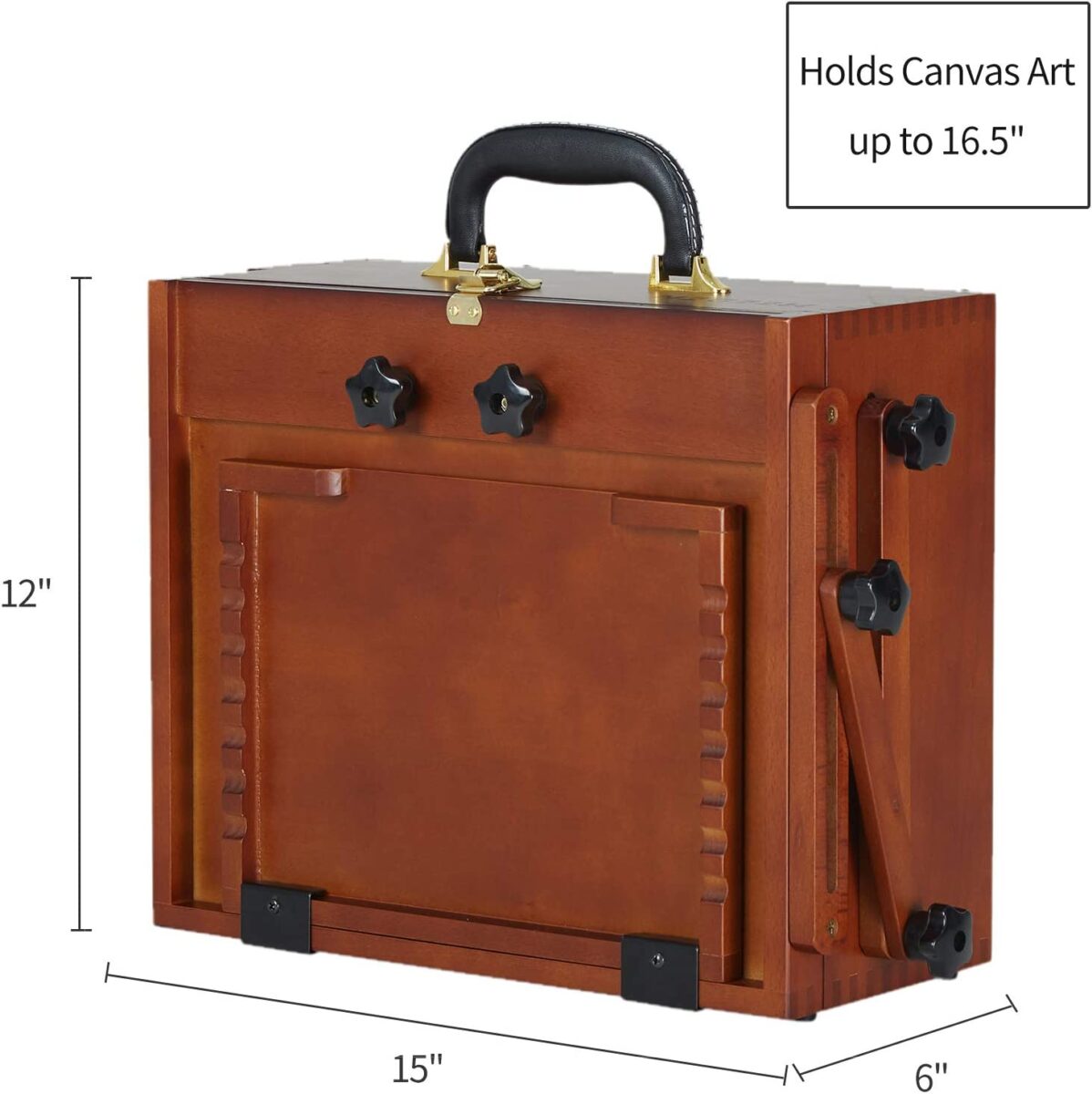 El brazo de ajuste con bisagras al lado de la caja pochade se puede ajustar a cualquier ángulo de pintura, incluso plana para la pintura de acuarela, las perillas de estrella en el brazo antioxidante hacen que los ajustes super fácil y firme.