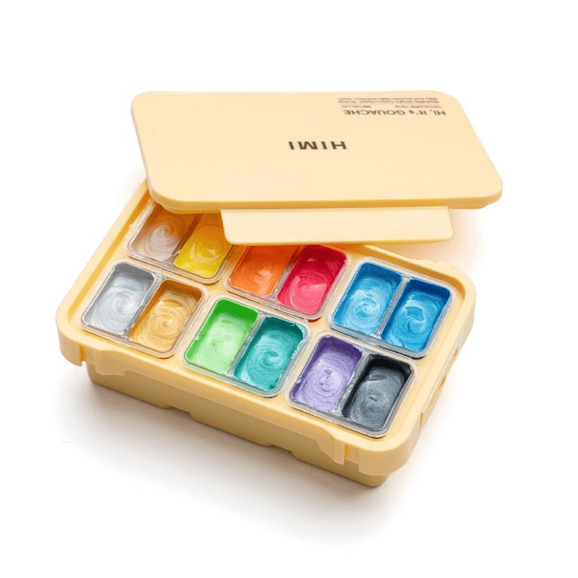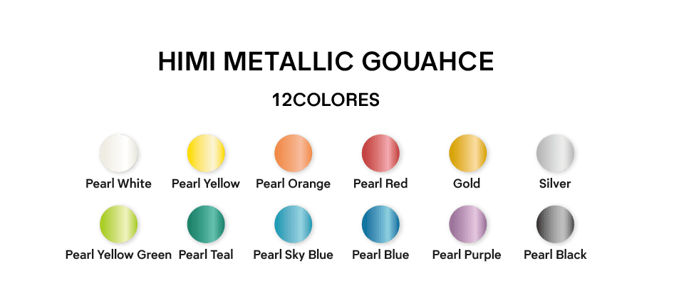 Set de gouache metalizados, son 12 colores con la misma consistencia del ya conocido gouache HIMI.
