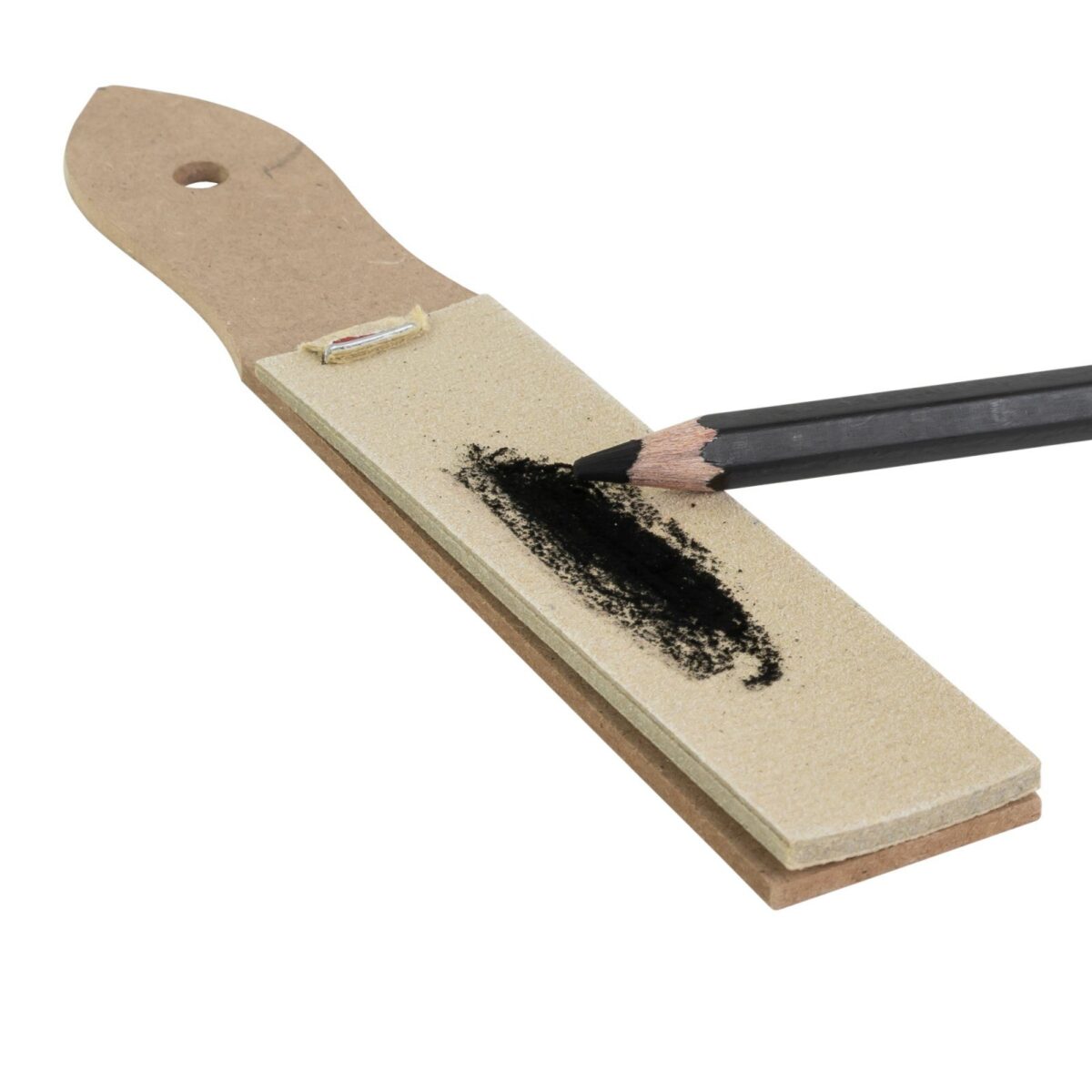 Es ideal para lápices de mina de 2 mm, aunque también puede emplearse para otros instrumentos blandos como pastel, carbón, tizas y crayones, adaptándose al material gracias a la abrasividad de la lija. Su utilidad radica en suavizar bordes rugosos, mantener la punta en el punto deseado y prolongar la vida útil de los materiales al evitar quiebre o desgaste irregular.